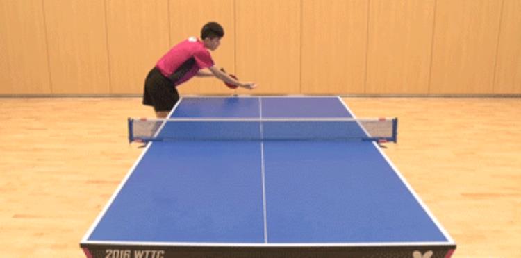 发长球不转或奔球时,向前轻推。一样的拍形,一样的触球点,轻推和发力摩擦有很大的区别,轻推是胶皮接触球时尽量不去摩擦,给球施加一个向前的力即可,也就是碰一下的感觉。