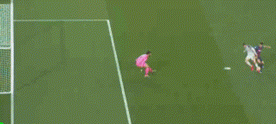 从这个进球过程来看,当梅西带球行进到大禁区前沿位置时,在梅西身后回追的法比尼奥倒地放铲将梅西脚下的皮球铲向点球点附近,