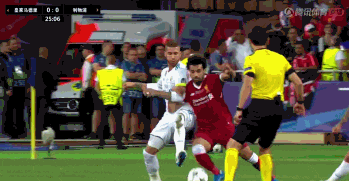 萨拉赫离场前的比赛中,利物浦在萨拉赫、马内、菲儿米诺组成的前场三叉戟带领下给了皇马巨大的压迫,无论控球时间、射门次数、造成的威胁等环节都明显优于皇马。无论是中路横切、斜线直塞、边路传中一度压制皇马在半场鲜有攻势。但正当利物浦形势占优的大好局面下,萨拉赫在一次突破拉莫斯的过程中,被拉莫斯胳膊夹住,两人随后双双倒地。